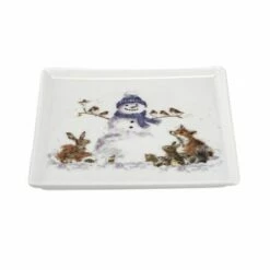 Wrendale Designs Christmas Collection Square Plate Snowman measures 18cm x 18cm.